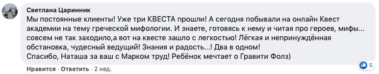 Вы можете устроить своему ребенку и его друзьям детективную вечеринку в zoom, захватывающее познавательное приключение в онлайн квест-академии, скачать и распечатать один из printable квестов и превратить вашу квартиру в игровую локацию со спрятанным сокровищем. Пишите, звоните, оставляйте заявку, и мы с удовольствием подберем для вас наилучший вариант.
